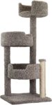 61-inch tall plush structure, 5 sisal posts, 2 caves, light gray, 48 pounds.