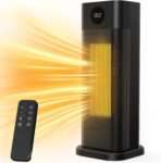 Heating Performance & Power: Enhanced PTC element and 75° oscillation provide rapid warmth (3S) covering up to 300 sq. ft. Safety Features & Certifications: ETL-listed, it offers tip-over, overheat protection, and enhanced safety with a V0 flame-retardant plug. Controls & Usability: Offers smart scheduling via phone app, voice control, and a convenient remote control. Design & Mobility: Features a 30″ tower design with multiple heat modes, ECO mode, and precise 41-95°F temperature control. Energy Efficiency & Noise: Runs whisper quiet (around 35dB) with a 24-hour timer, ideal for undisturbed sleep or focus.